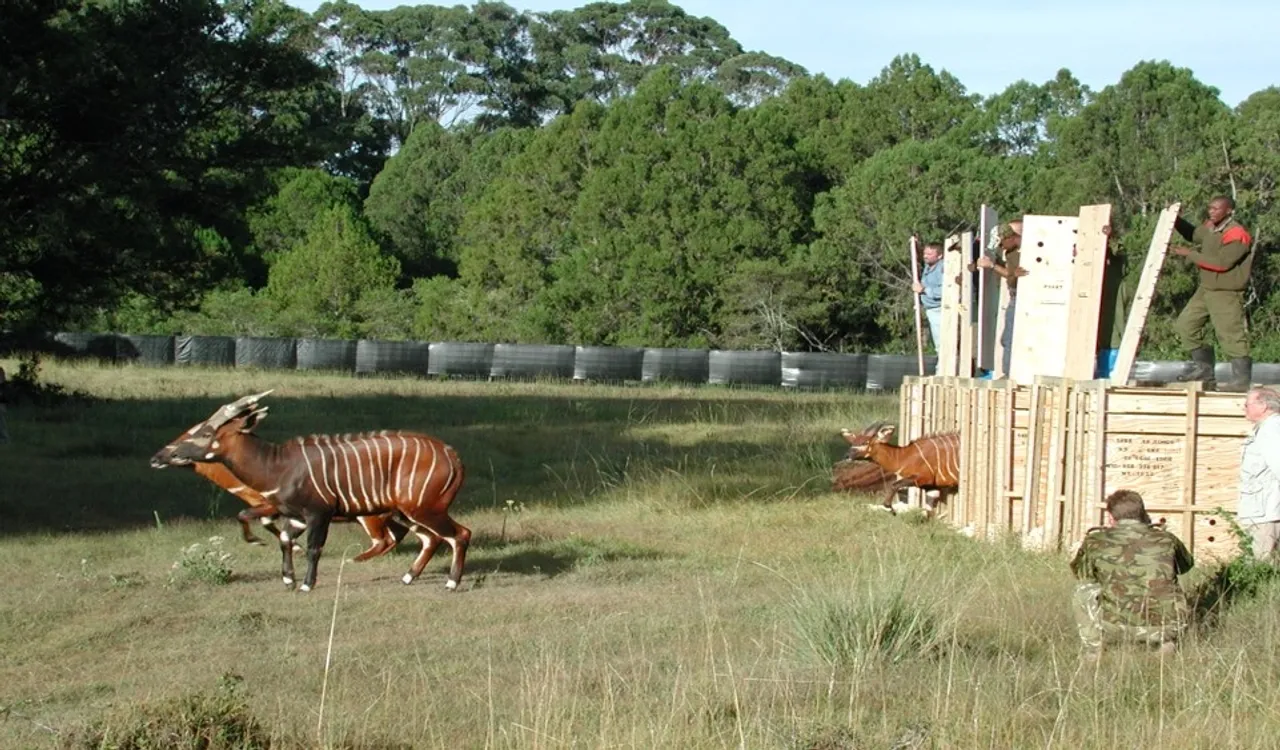 One kain rare antelope wey dem dey call mountain bongo (Tragelaphus eurycerus isaaci), wey dem don dey keep for American zoo for many years, don dey return go im original homeland for Kenya. Dem talk say di number of di animal for di wild no reach 100 again.